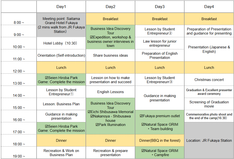 The camp will be held in Fukaya City, one hour train trip from Tokyo and accommodation will be at Saitama Grand Hotel Fukaya, Accessible City Hotel Offering Hearty Service and Cozy Rooms.